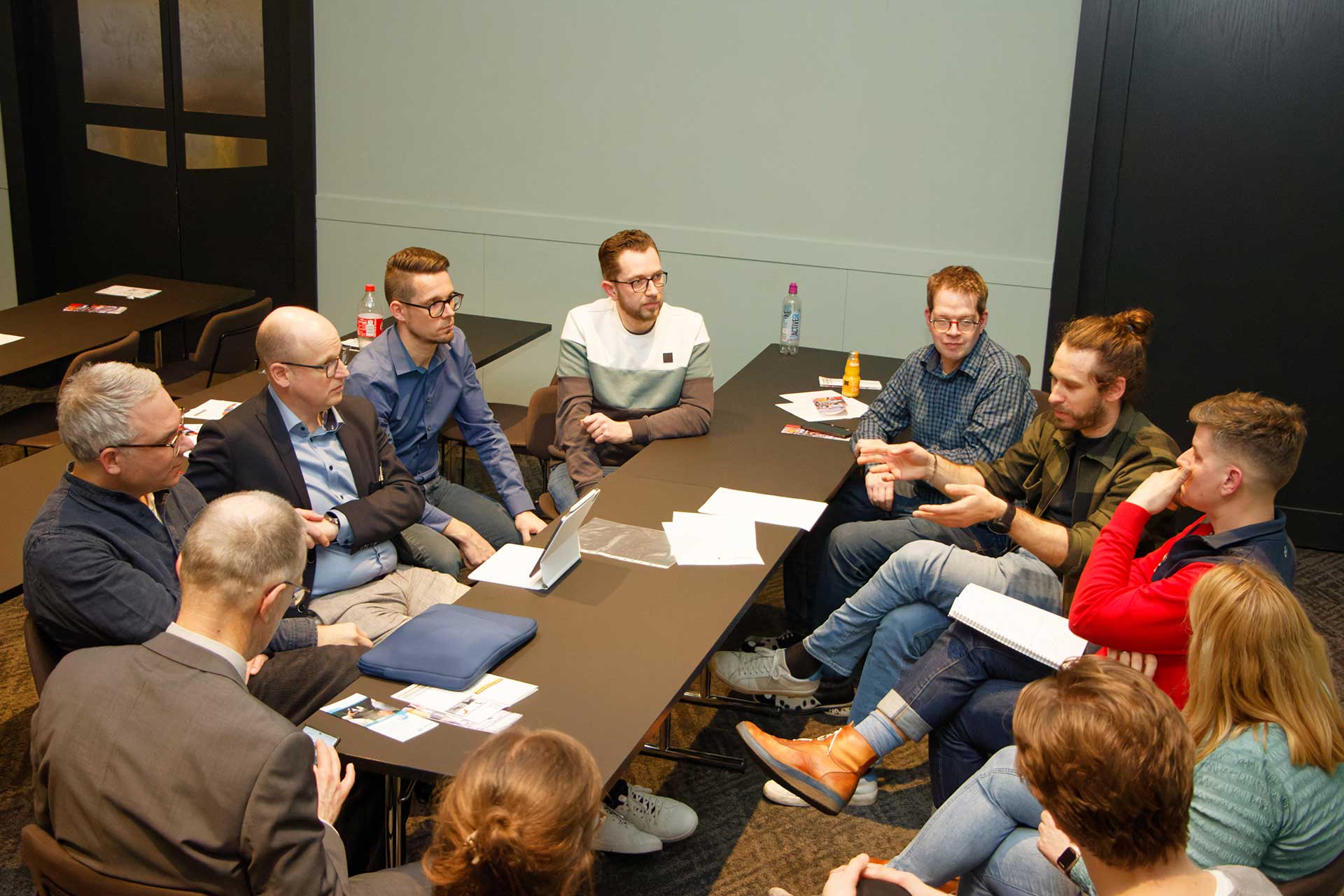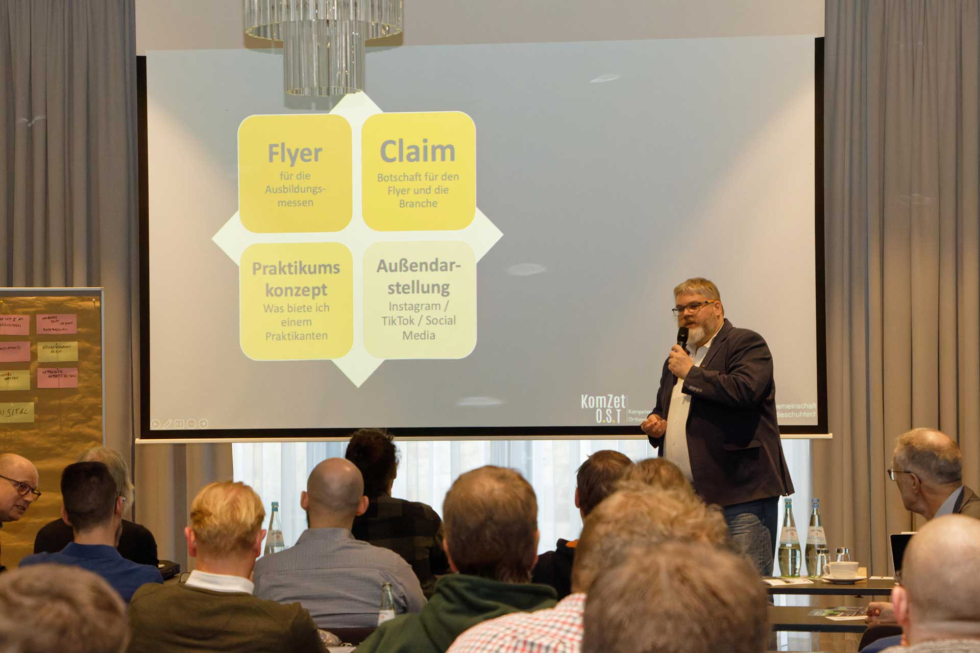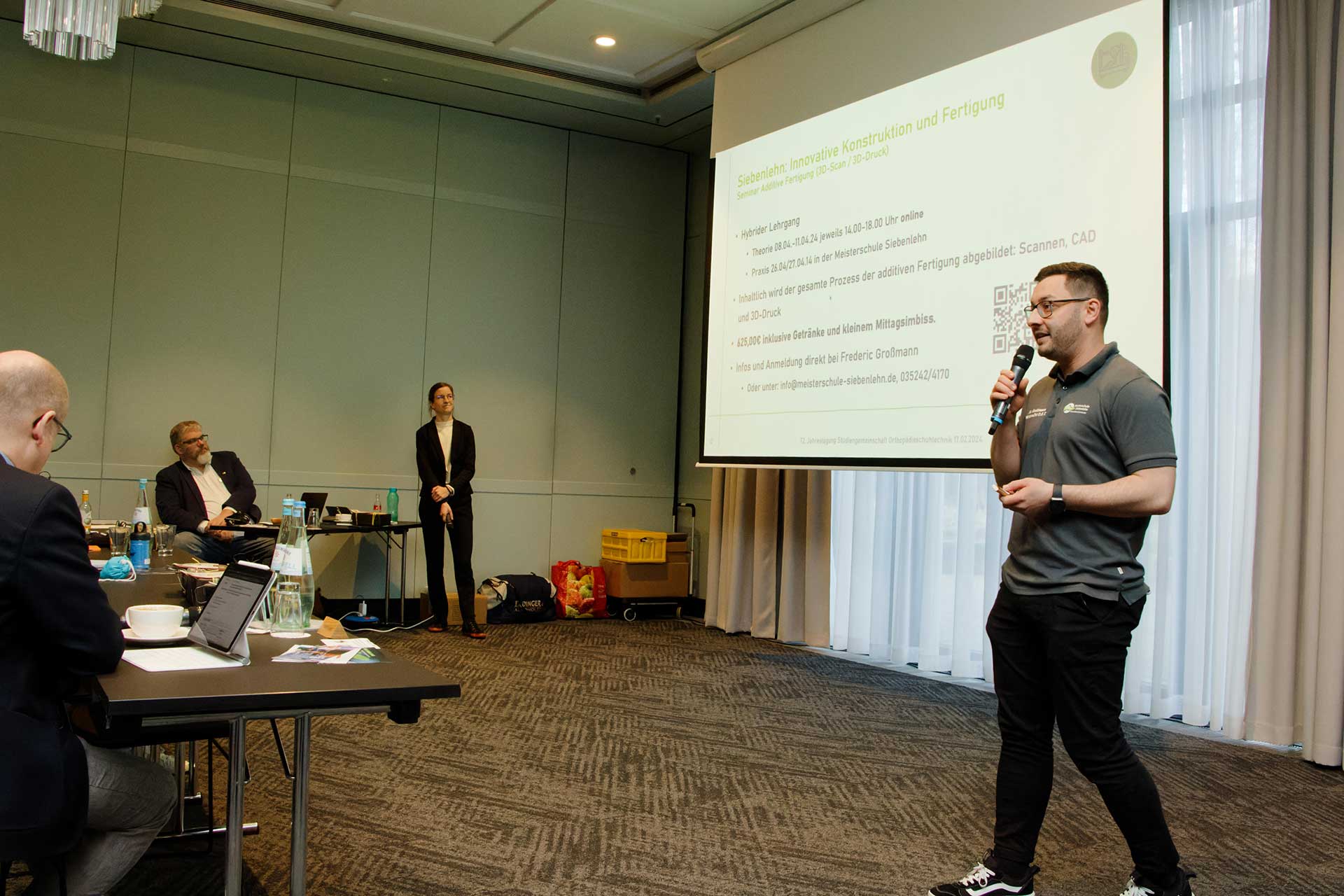 Die neue Sitzordnung war zunächst etwas fremd, aber wer bei der Coronatagung 2022 dabei war kann sich noch daran erinnern, dass der Saal schon einmal quer stand. Dieses Konzept hat das Remarque als Vienna House Hotel jetzt übernommen und so haben wir zwei Leinwände und zwei Beamer gleichzeitig bespielt. Inhaltlich ging es aber, wie immer, gleich in die Vollen. Am Vormittag des ersten Tages drehte sich alles um die Versorgung von Sportlern und Überlastungsbeschwerden. Vor der Mittagspause stand dann, wie in den vergangenen Jahren auch, die Ehrengastlecture auf dem Programm. Dieses Jahr hatten wir die Freude Prof. Dr. P. Lobenhoffer zu ehren und der einen Vortrag über die Auswirkungen von Achsdeformitäten auf Knie- und Sprunggelenk hielt. Besonders beeindruckend dabei war, dass mehrere Osteotomien ein Fehlstellung wieder korrigieren können und damit sogar die „Selbstheilungskräfte“ des Körpers aktiviert werden. Prof. Lobenhoffer ist Vizepräsident der GOTS (Gesellschaft für Orthopädiesch-Traumatoloische Sportmedizin) und leitender Arzt der go:h in Hannover. Aber auch die weiteren Themen des Freitags waren hören- und sehenswert. Dabei haben wir immer versucht zwischen medizinischen und handwerklichen Vorträgen zum Thema zu wechseln. Denn der interdisziplinäre Austausch und der gegenseitige Respekt sind wichtiger den je um eine gute Versorgung und das Bestmögliche für den Patienten zu erreichen. Dies unterstrichen auch die Referenten aus der Ärzteschaft, allen Voran Prof. Dr. M. Engelhardt, der sich wie immer um die Auswahl der medizinischen Vorträge gekümmert hat, und der Präsident der D.A.F. (deutschen Assoziation für Fuß und Sprunggelenk e.V.), Dr. J. Dohle.Am Samstag ging es dann mit aktuellen Behandlungsmethoden bei DFS und ausgeprägten Fuß- und Sprunggelenksdeformitäten weiter. Dieser Block wurde von Prof. Dr. B. Greitemann und Prof. Dr. V. Valderrabano souverän von zwei bekannten Gesichtern in Osnabrück vertreten. Neu war OSM L. Lelgemann, der über die orthopädieschuhtechnischen Versorgungsoptionen berichtete. Im 6. Block wurde es dann technisch, als es um die neusten Einsichten bei der SMFO (Sensomotoric Foot Orthesis) ging. Nach der Mittagspause stellte dann Dr. A. Kerkhoff die aktuellen Entwicklungen im KomZet O.S.T. vor und leitete zum Open Space über, der sich mit dem Thema „Gemeinsam Zukunft Gestalten“ grundsätzlichen Fragen des Orhtopädieschuhmacherhandwerks stellte.