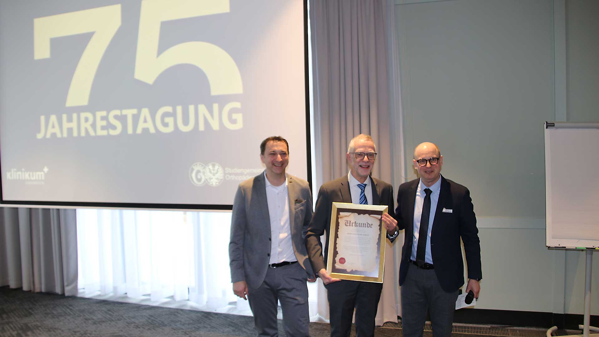 Im zweiten Block wurde das Plenum mit einem kinoreif inszenierten Teaser abgeholt. Der Rückblick auf 75 Jahrestagungen war weit mehr als nur ein stimmungsvoller Einstieg. Er machte deutlich, wofür die Studiengemeinschaft steht: für fachliche Entwicklung, für Austausch und für die Überzeugung, dass Orthopädieschuhtechnik von Wissen lebt, das genutzt, geteilt und weiterentwickelt wird. Der Introtext traf dabei genau den Ton der Veranstaltung: Tradition nicht als Stillstand, sondern als Rückenwind.