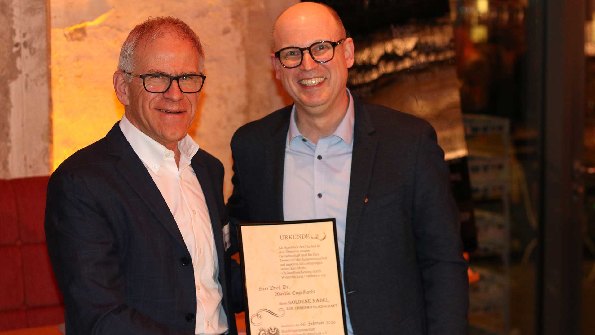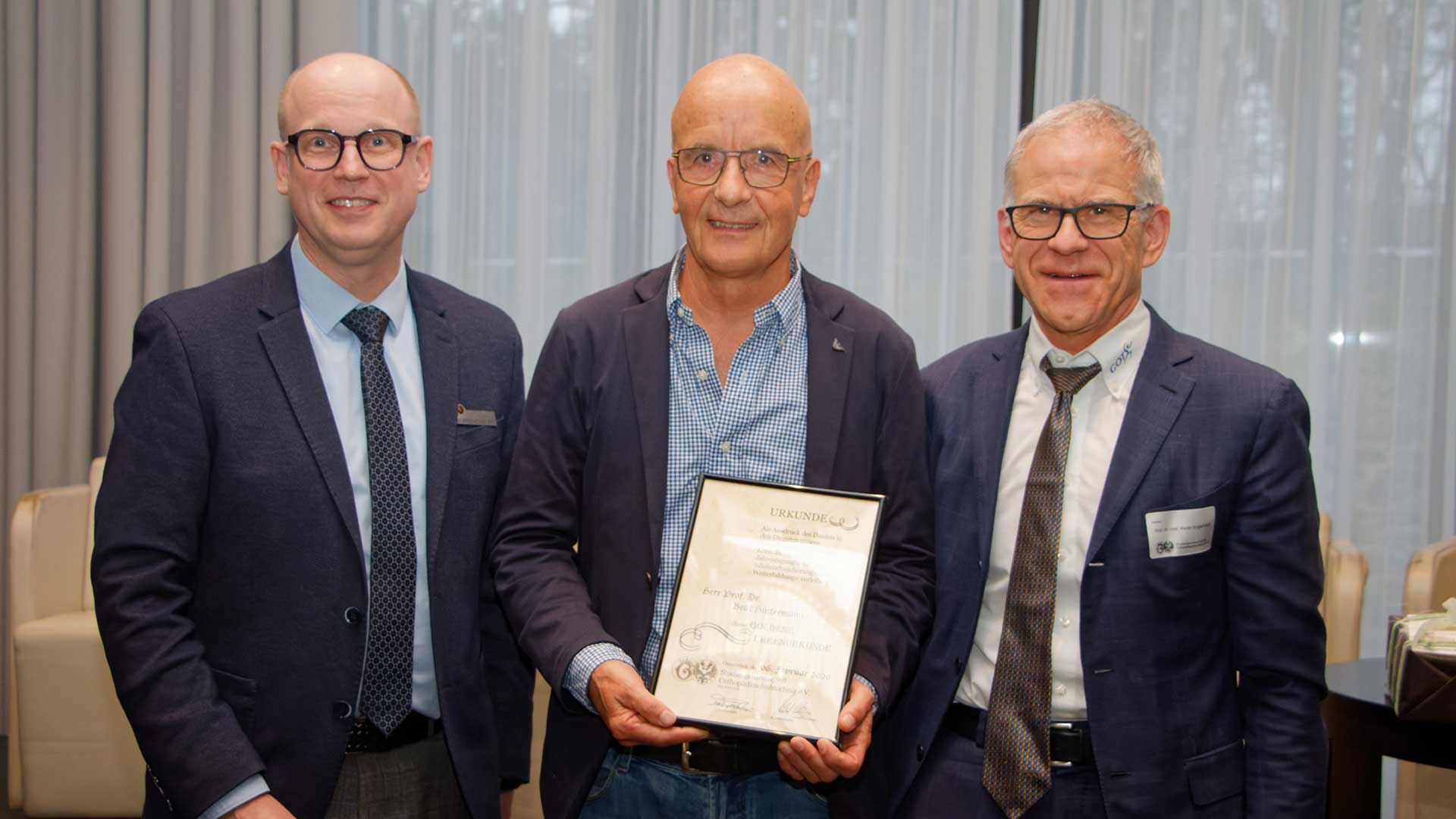 Im Anschluss wurde Hans-Georg Ahrens für sein langjähriges und prägendes Engagement für die Bildungsarbeit und die Orthopädieschuhtechnik mit der Ehrenurkunde der Studiengemeinschaft ausgezeichnet.